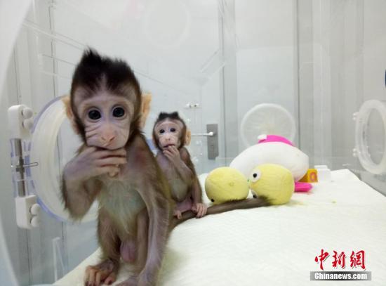 两只时而吐着舌头,时而吮吸着手指卖萌翻滚玩耍的克隆小猴刷屏了!它们取名“中中”、“华华”,寓意“中华”。