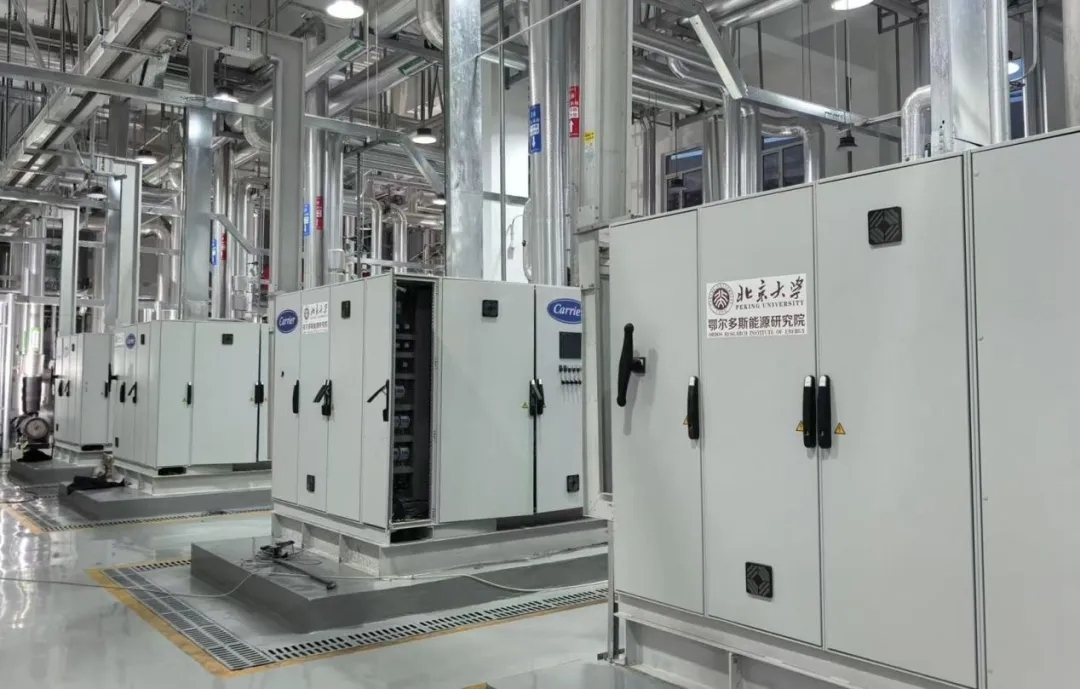 北京大学鄂尔多斯能源研究院针对机场建筑长期依赖化石能源供热、冷热分离、含氟制冷剂破坏臭氧层、低温工况能效衰减,以及绿电与用能需求时空错配等问题,从能源供给端创新研发,形成3项创新成果:全球首套宽温域、大型化的二氧化碳冷热一体化供能系统,全球首套与二氧化碳冷热一体化系统耦合的跨季节蓄采地源系统,以及全年均衡消纳绿电的冷热电零碳能源体系下的AI智能调控平台。该技术成果经中国交通运输协会评定,整体达到国际领先水平。