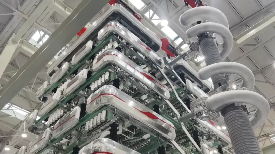 依托内蒙古电力(集团)有限责任公司牵头的国家重点研发计划项目“大规模可再生能源基地特高压多端直流输电外送关键技术”,成功研制出世界首台特高压混合换相换流器(HCC)。混合换相换流器是适用于+800kV/8000MW特高压直流输电系统的核心设备,该成果突破传统换流阀技术瓶颈,创新性采用新型逆阻IGCT功率半导体器件,构建RC+MOV组件拓扑方案,通过优化串联数设计、动静态均压回路及饱和电抗器参数,解决特高压场景下换相失败、电压分布不均等关键问题。结构设计上,提出10级、12级、14级及优选的11级横向MOV阀组件方案,采用4层大平层阀塔结构,经多物理场仿真验证,抗震、电场及散热性能均满足设计要求,安全裕度充足。通过系列严苛试验,该换流阀模块在5300A额定电流、±83.69kV直流电压下稳定运行,耐受113kV雷电冲击、112kV陡波前冲击,5kA通流及6300A过负荷试验无异常,各项指标符合GB/T20990.1-2020等标准要求。